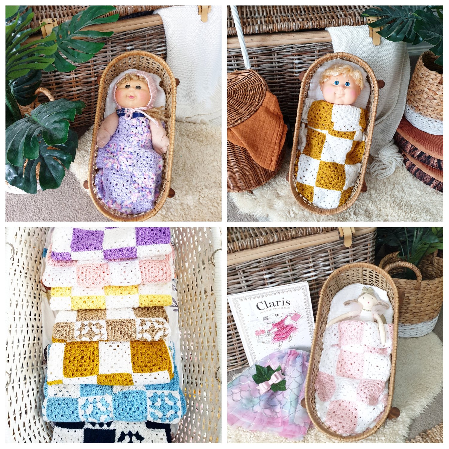 Let your little one tuck their doll in for a loving cuddle with our vintage look crochet blanket ♡